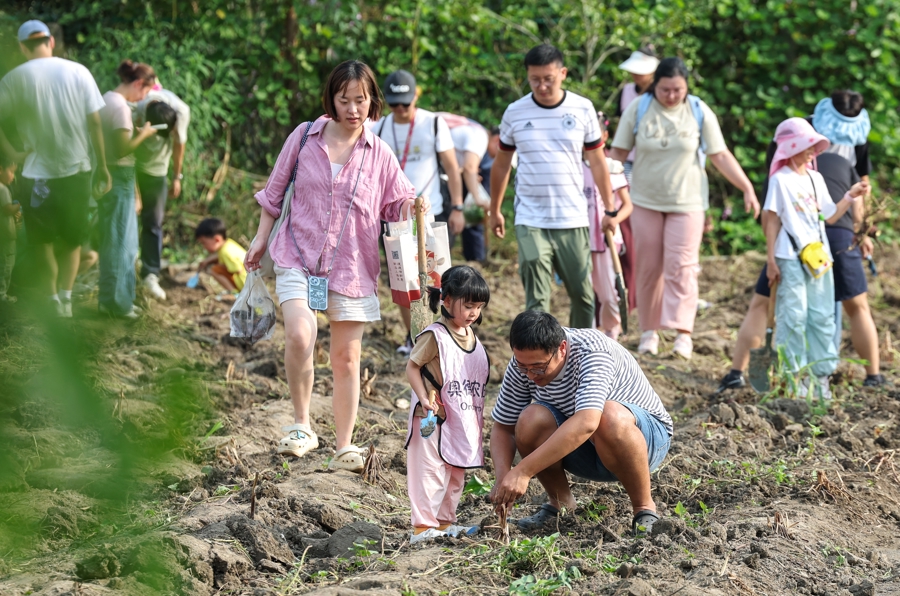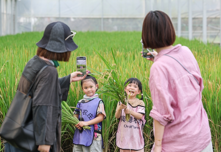 国庆期间,不少市民选择远离城市喧嚣,去郊野田间和自然万物来个亲密接触。10月2日,在上海市松江区车墩镇奥德农庄,丰富多彩的农事体验项目深受游客的青睐,吸引众多游客前来亲近自然,乐享假期。